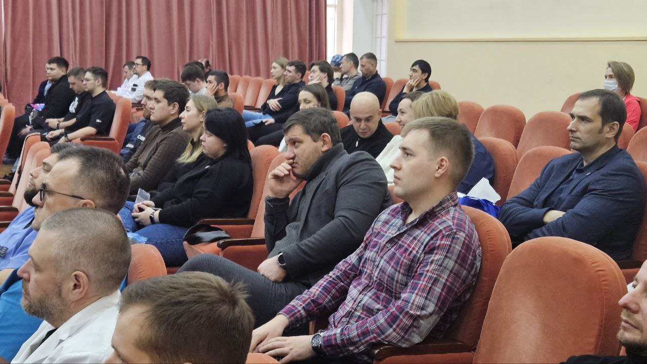 В большом конференц-зале областной больницы прошло заседание областного общества хирургов «Мосты сотрудничества: приемственность военных и гражданских специалистов в оказании помощи участникам СВО».